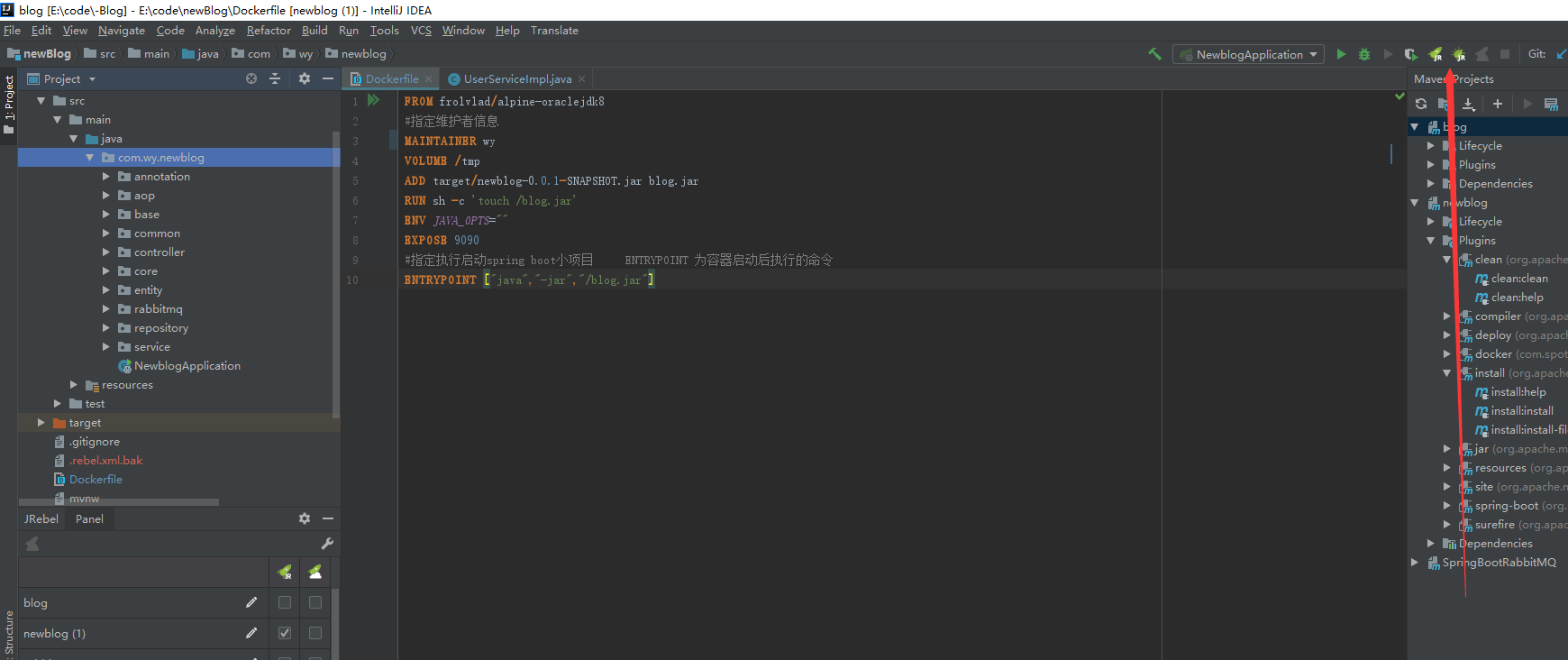 #dockerfile配置文件,和target在同一级,右击文件名启动